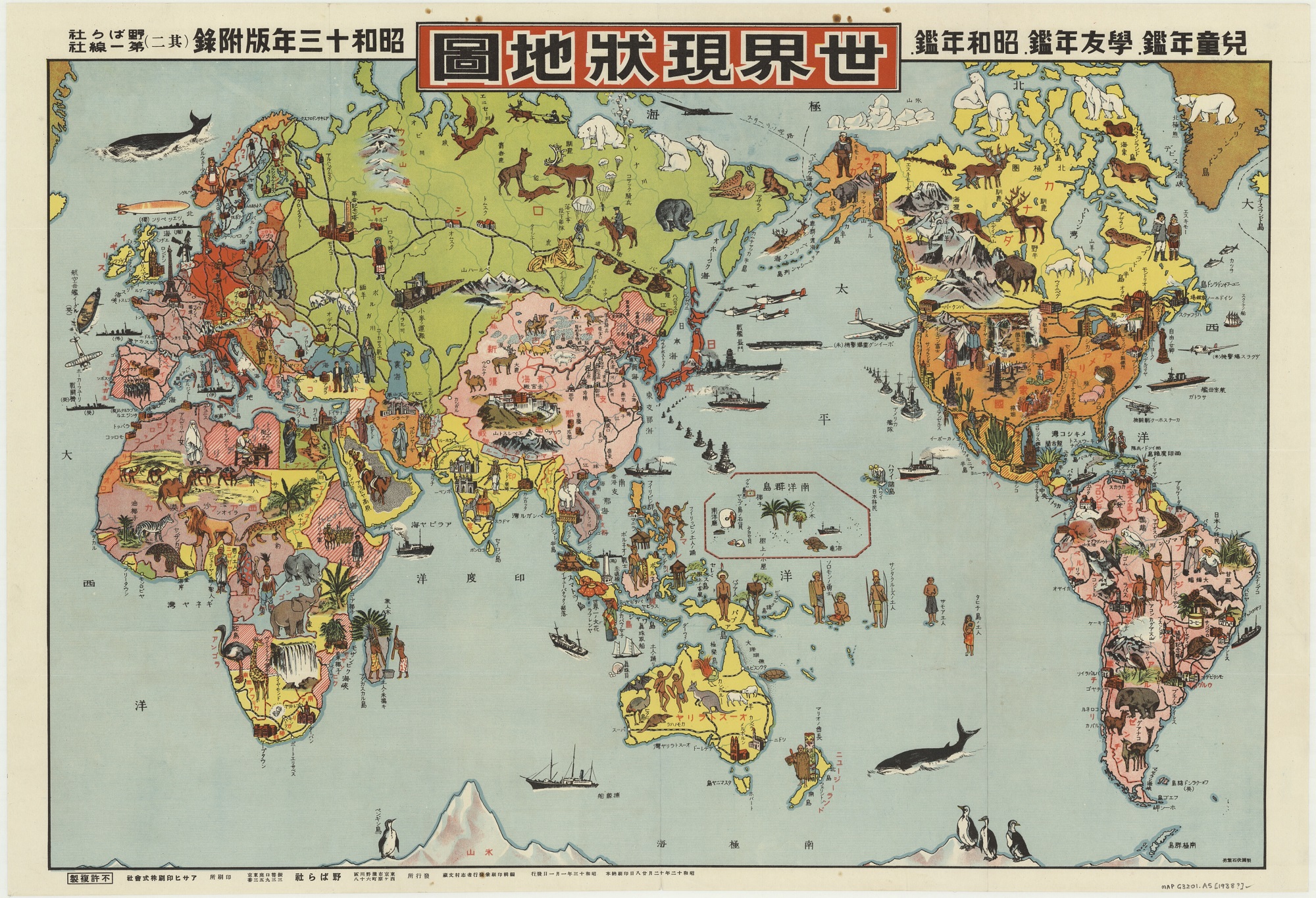 1938年の日本語のカナダの図解入り地図をご覧ください