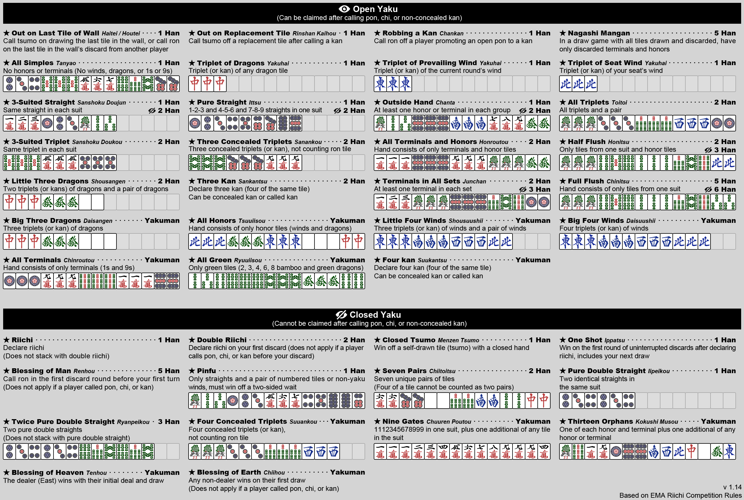 天和、四暗刻、大三元~みたいな感じで