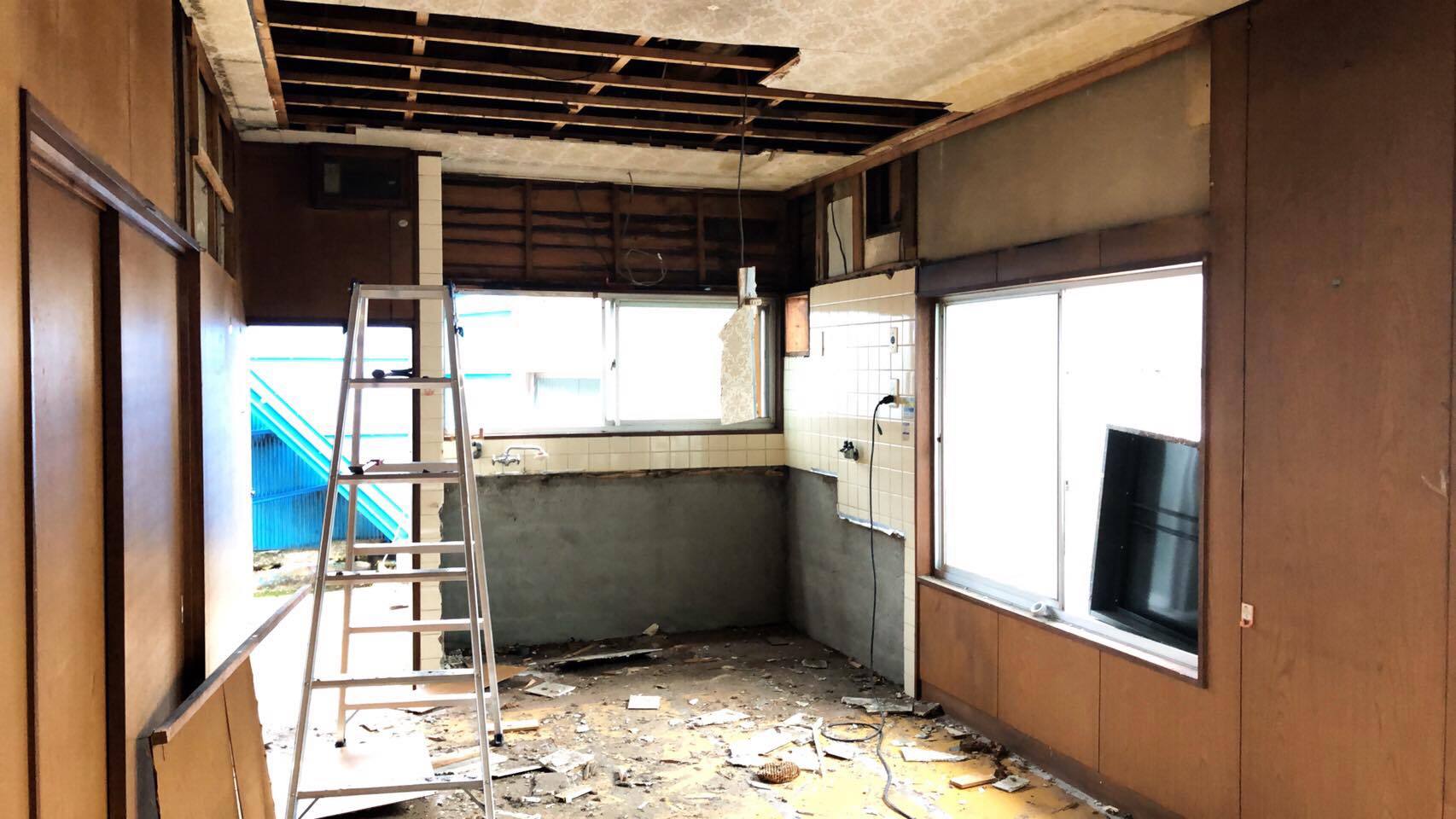 台所の天井も剥がされる