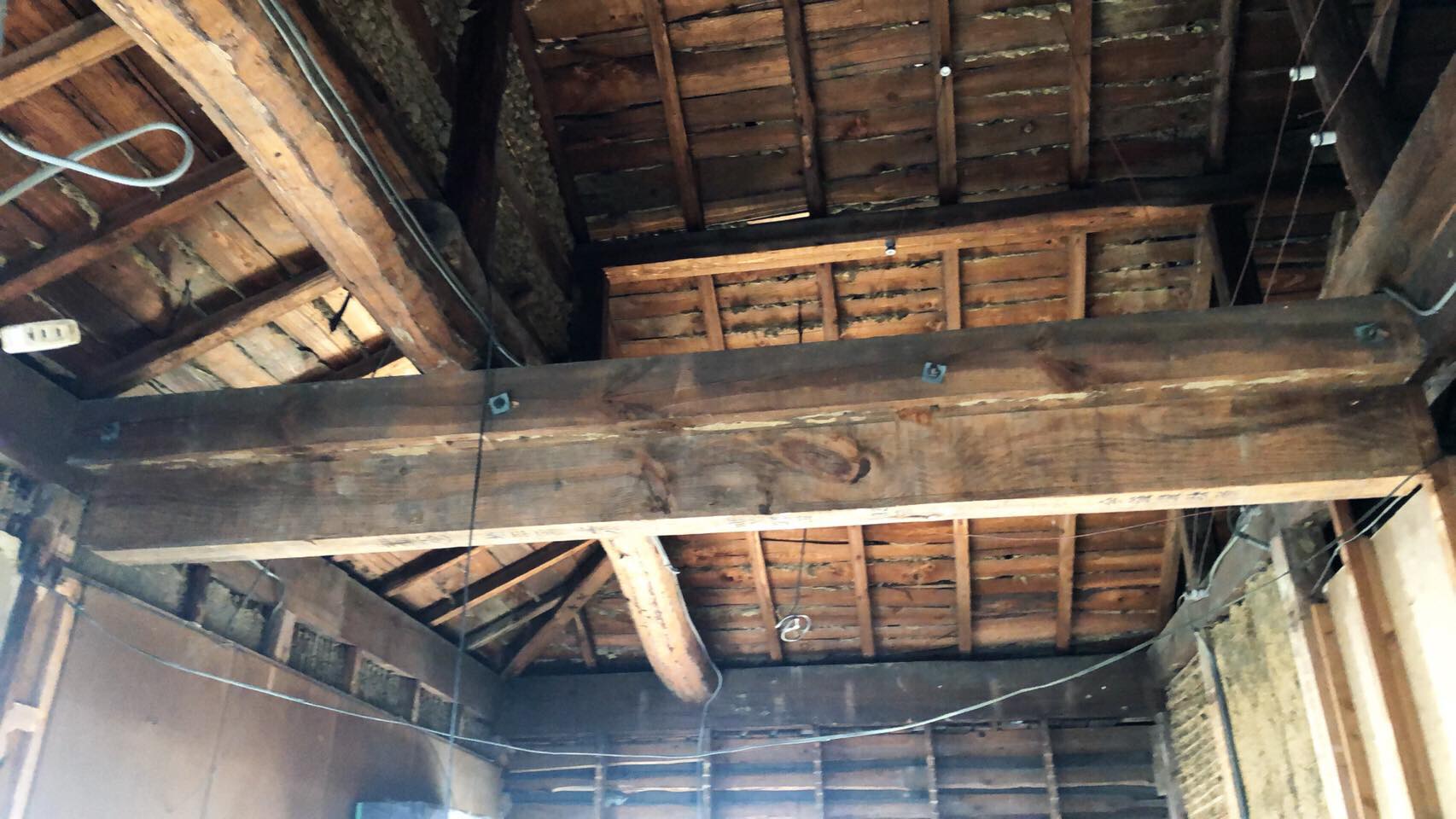 こちらも天井を剥がしたら汚れた古い寺のようになった
