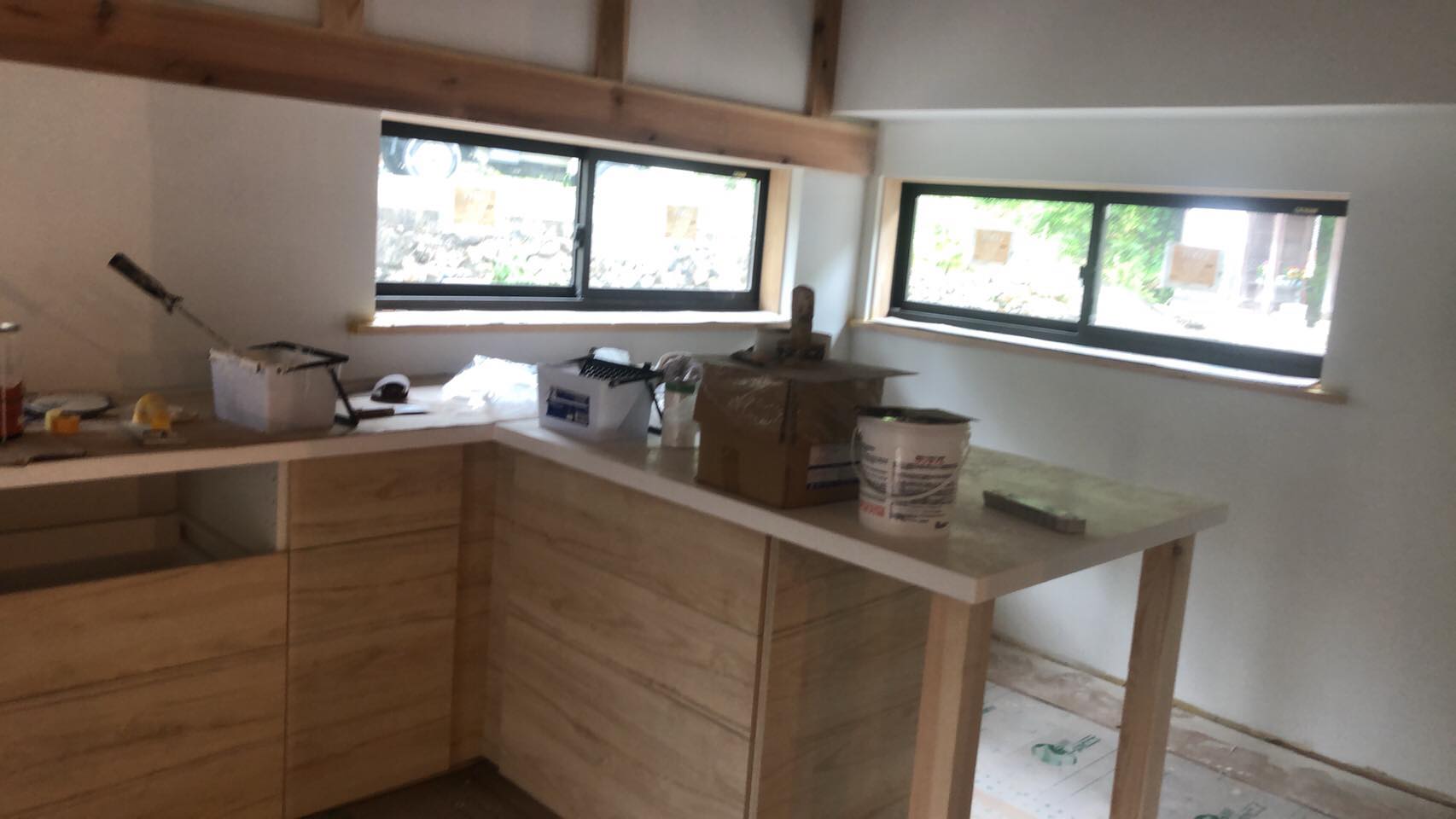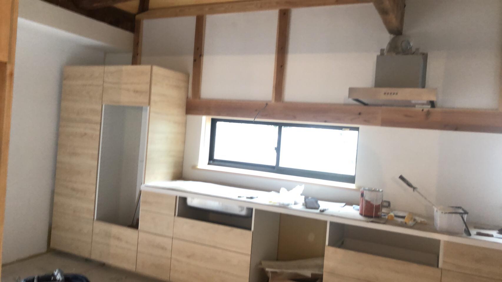 仕上げ塗装の1回目をやった台所