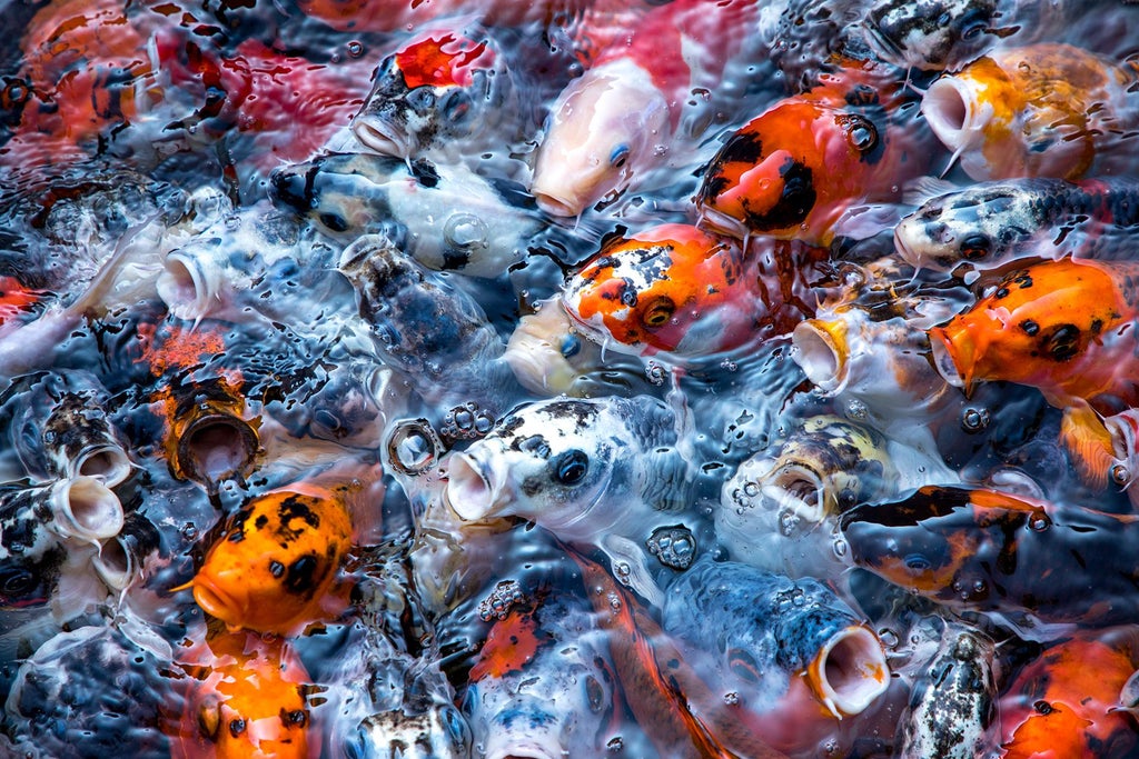 鯉というカーペットの上を歩いてるんだ