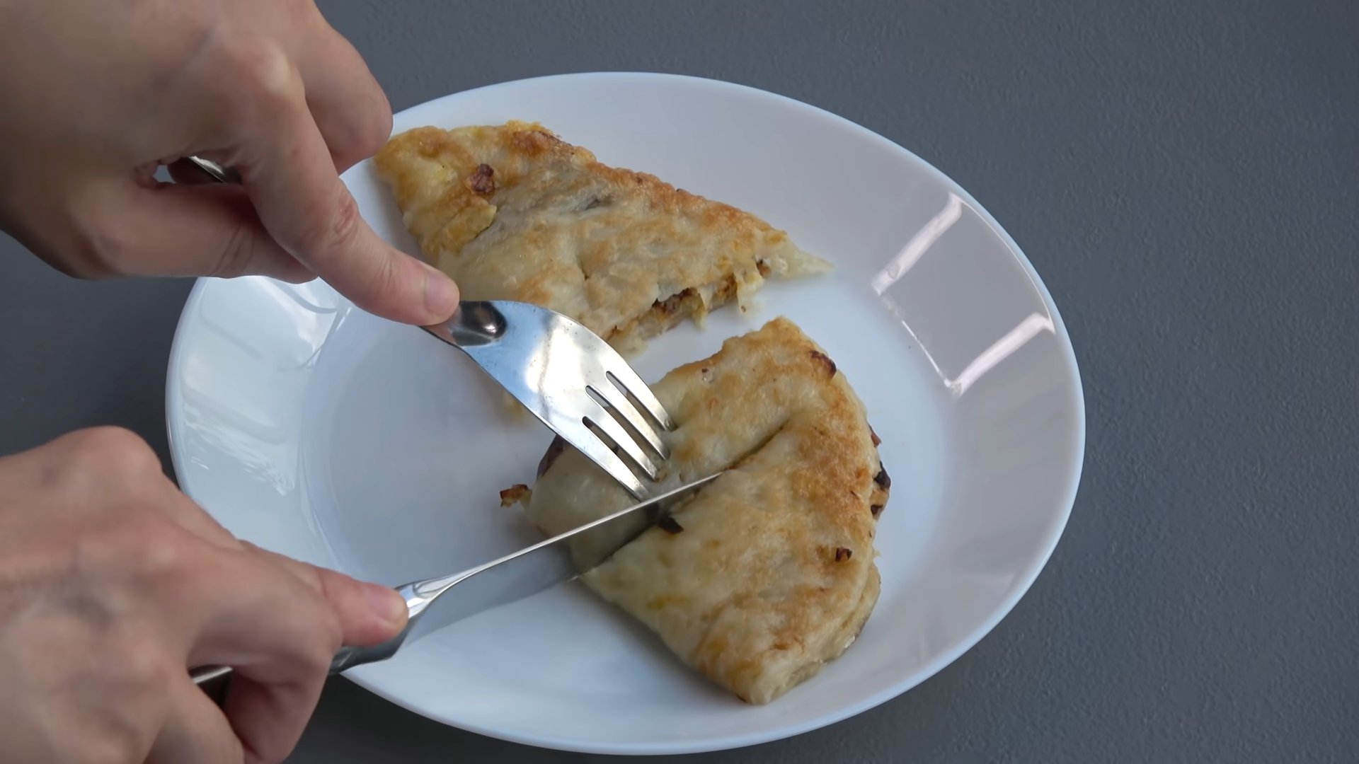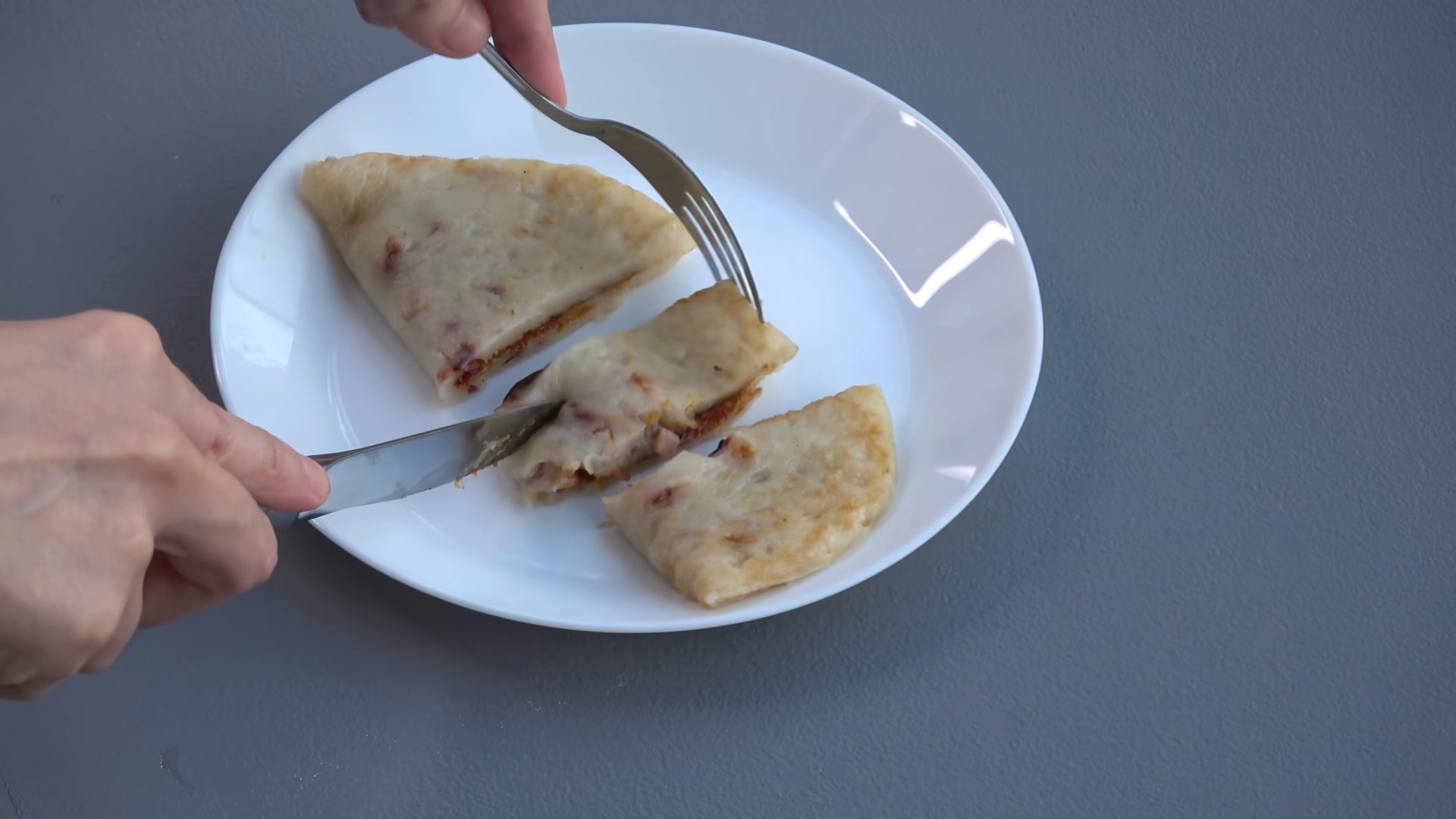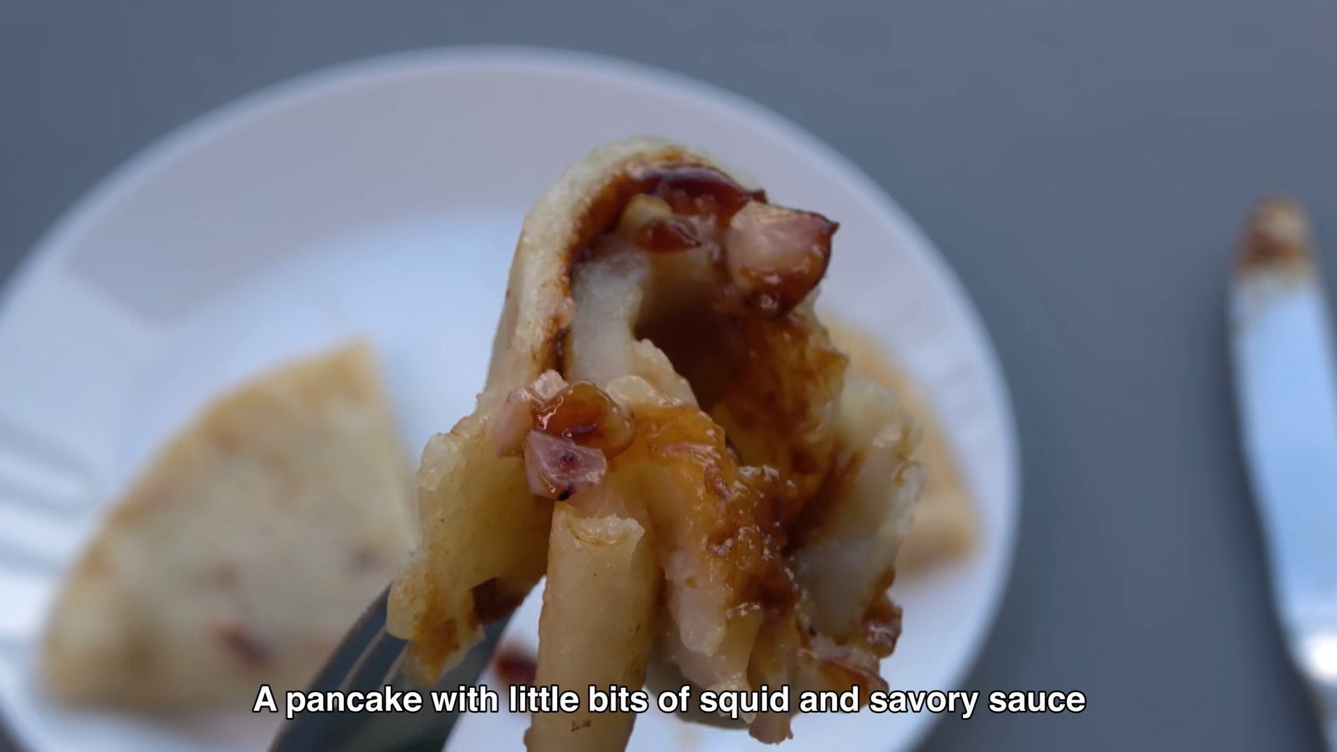小さく刻んだイカとしょっぱいソースの入ったパンケーキ