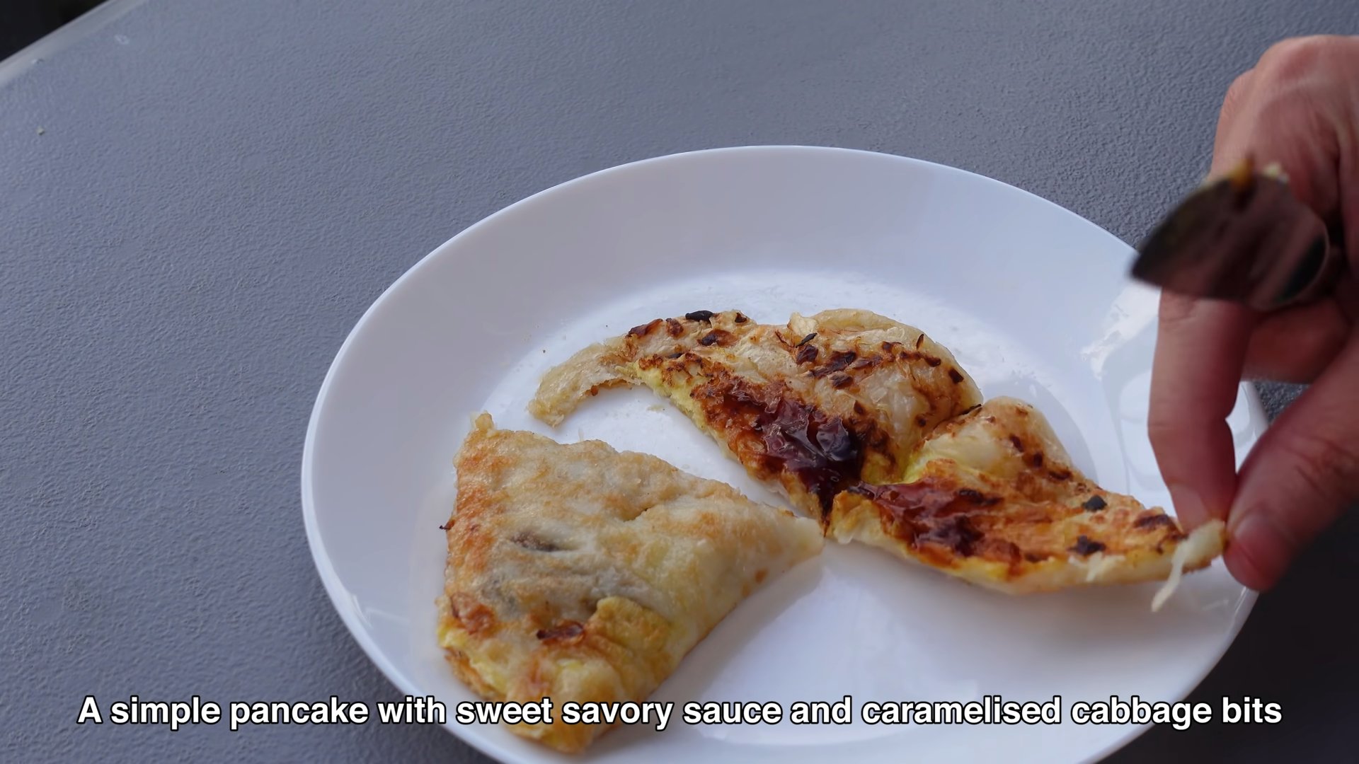 甘じょっぱいソースと刻んだキャベツが入ったシンプルなパンケーキだった