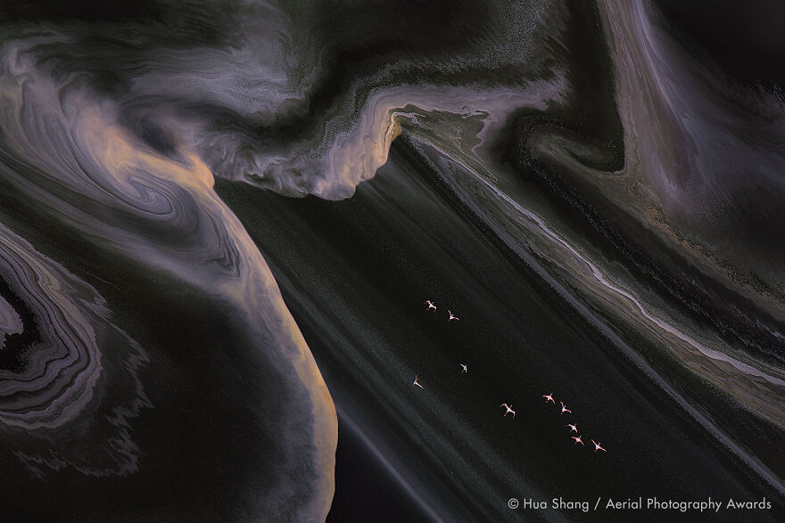 野生動物部門1位:飛ぶフラミンゴ(ケニア)