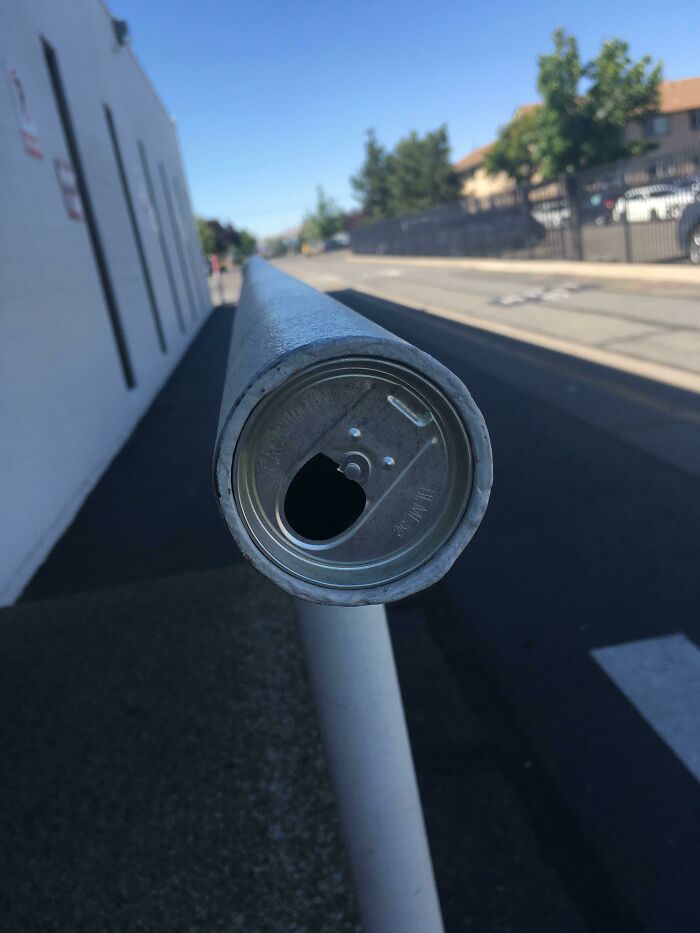 手すりに入った缶