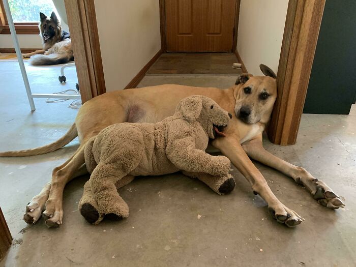万国アノニマスさん うちの子犬がしばらく紛失していたドーナツの玩具をやっと見つけて