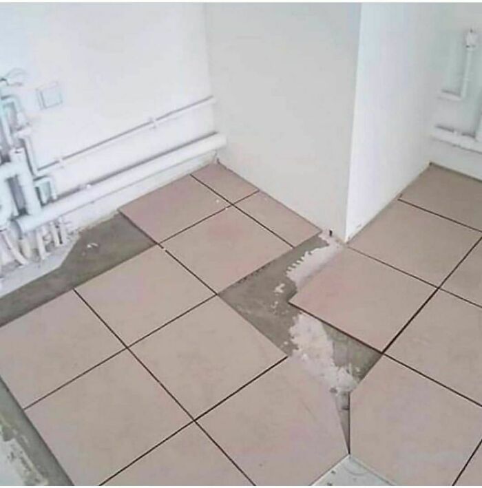 それなら、手前にある水道と排水溝もその高さにないといけない。
