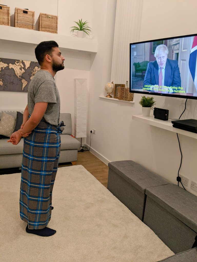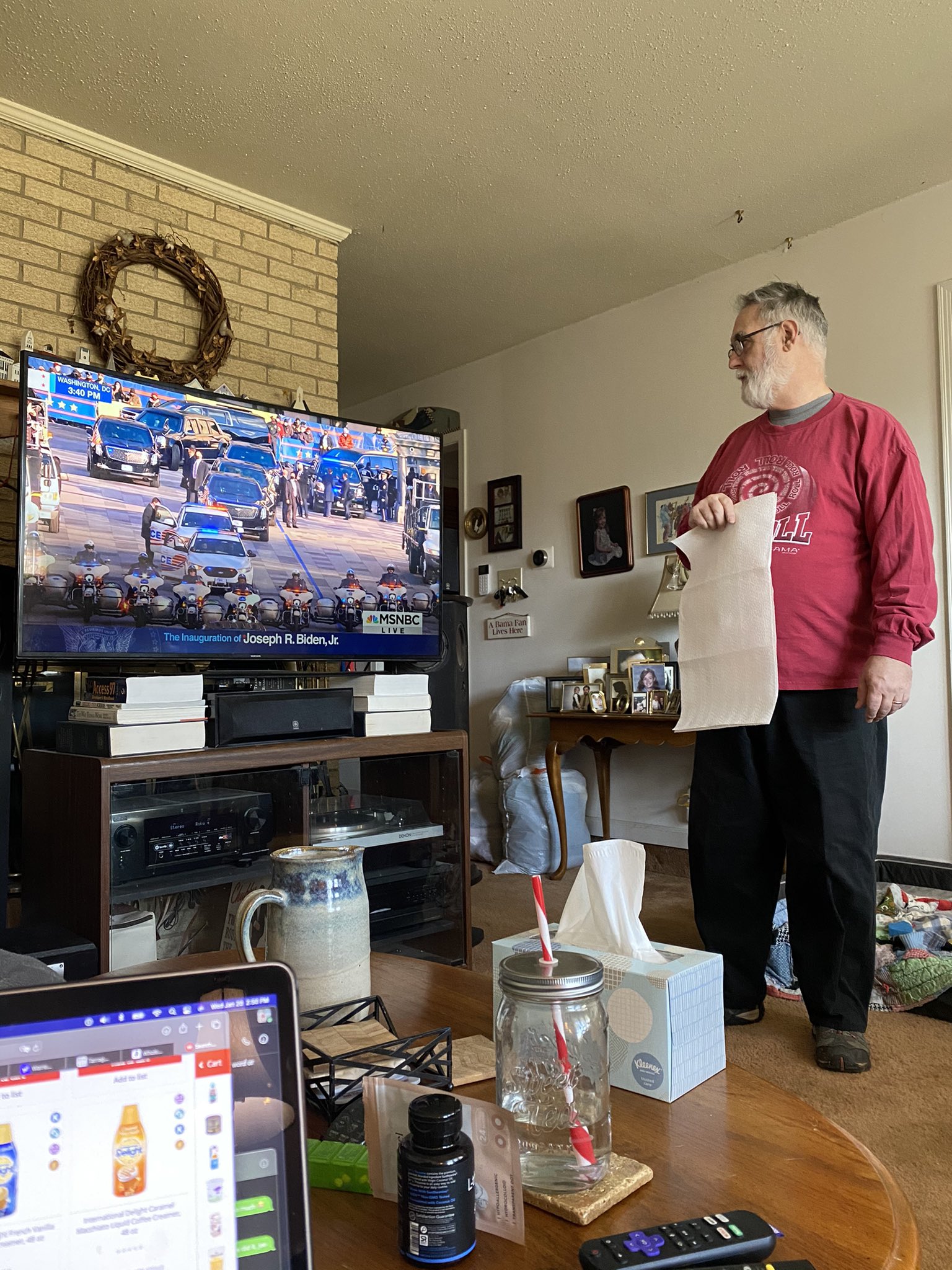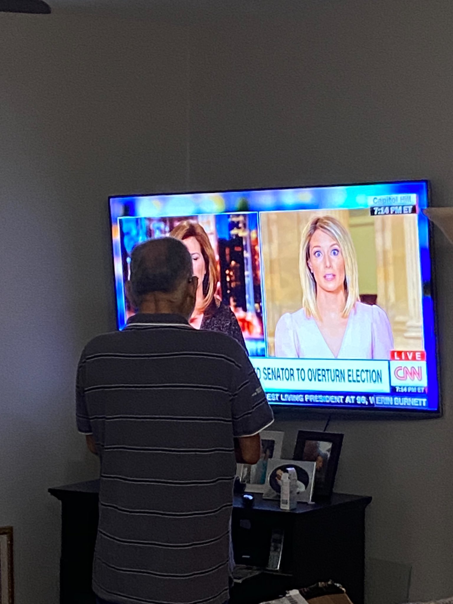 帰宅したら父親がテレビの目の前に立って仕事着のまま見ていた