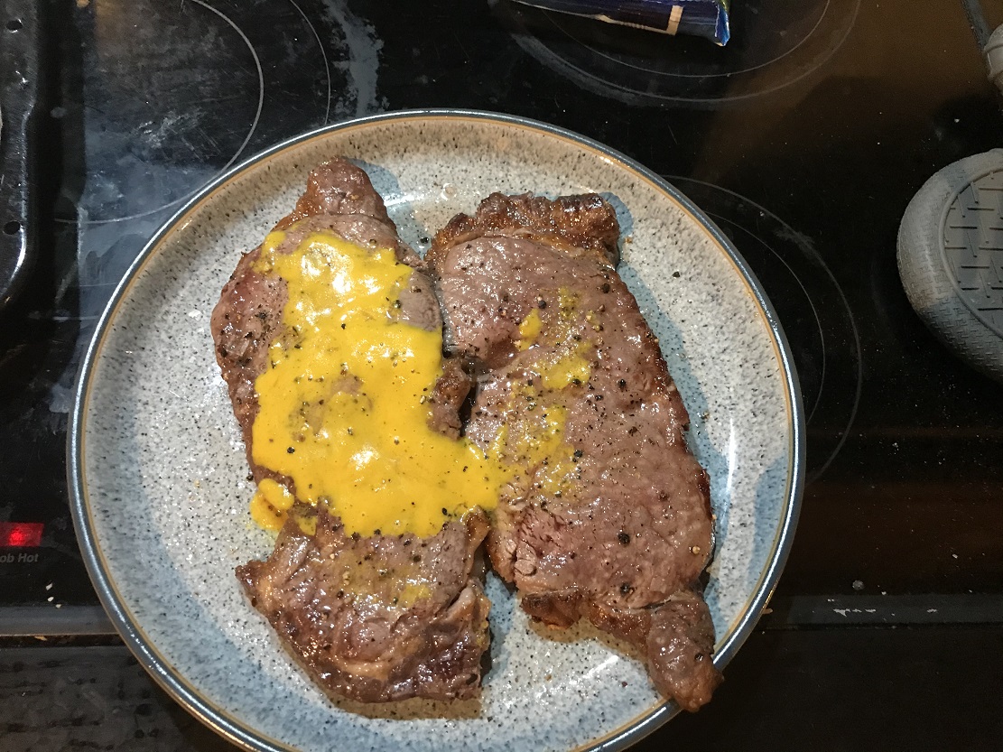 ステーキにベルビータチーズをかけてるのか?