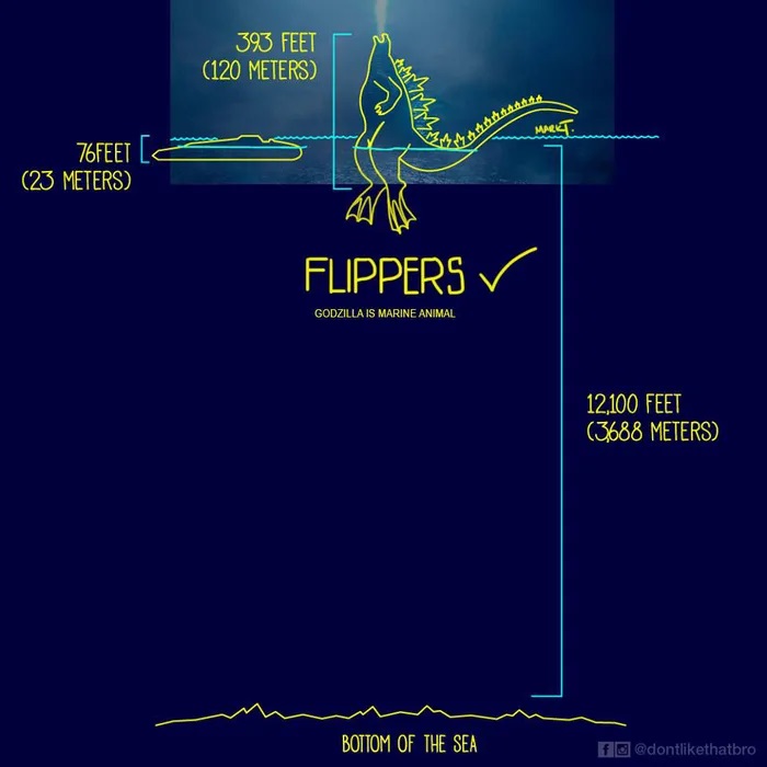 ゴジラが海底に立ってるとした場合、あの場所の水深は30mくらいかと思うけど