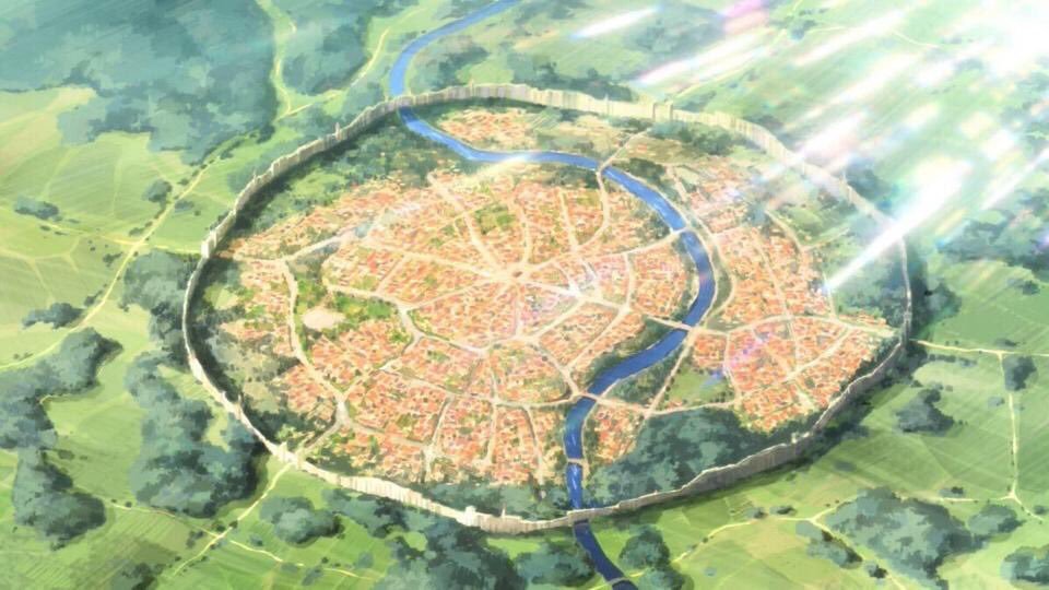 アニメ世界観的に、中世ヨーロッパをモデルにしているのであれば、一般的に身を守るために都市を作るのであればこうなるであろう…は仕方ないが…