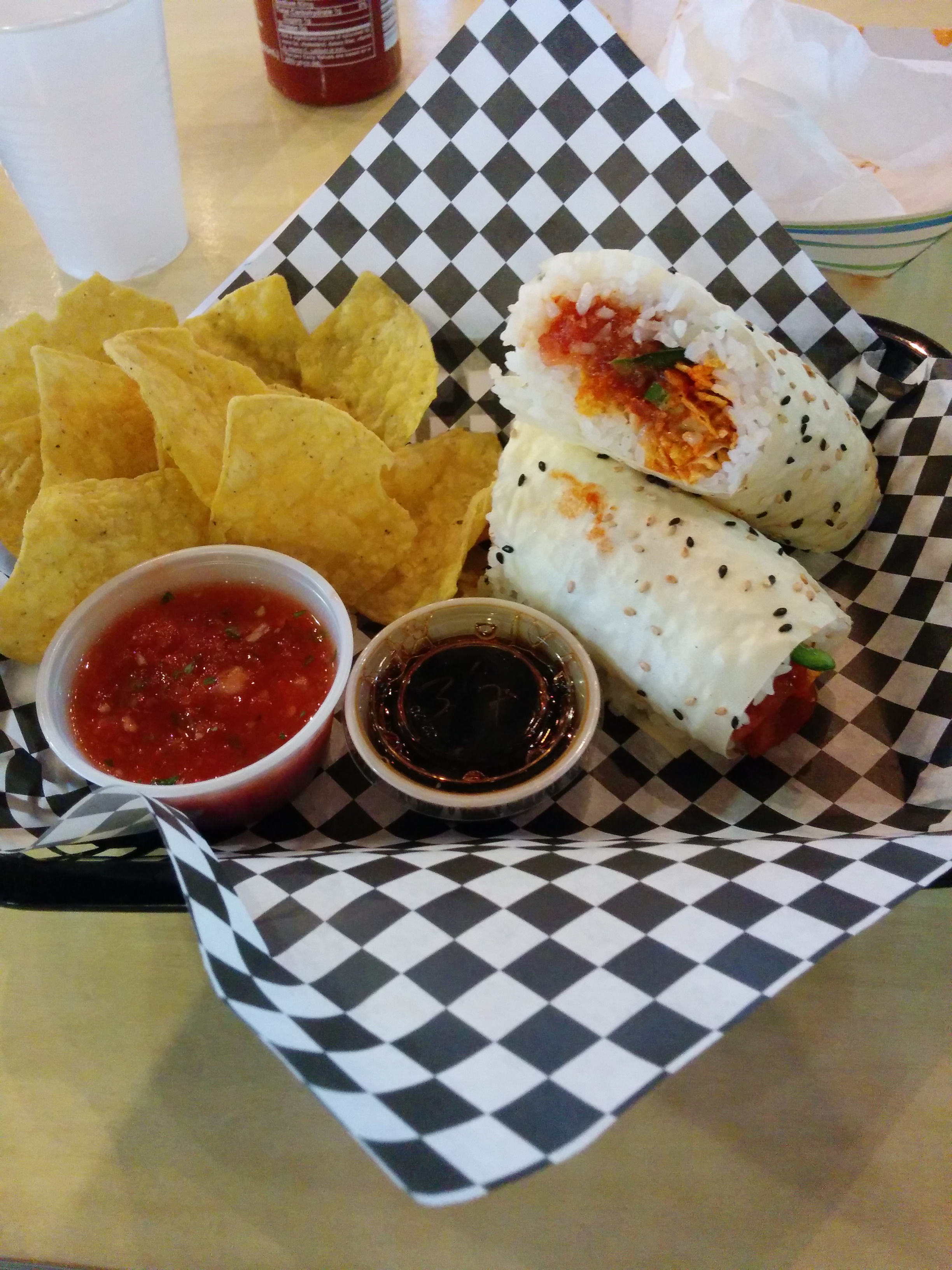 自分のお気に入りの店で食べた寿司ブリトーとナチョス!
