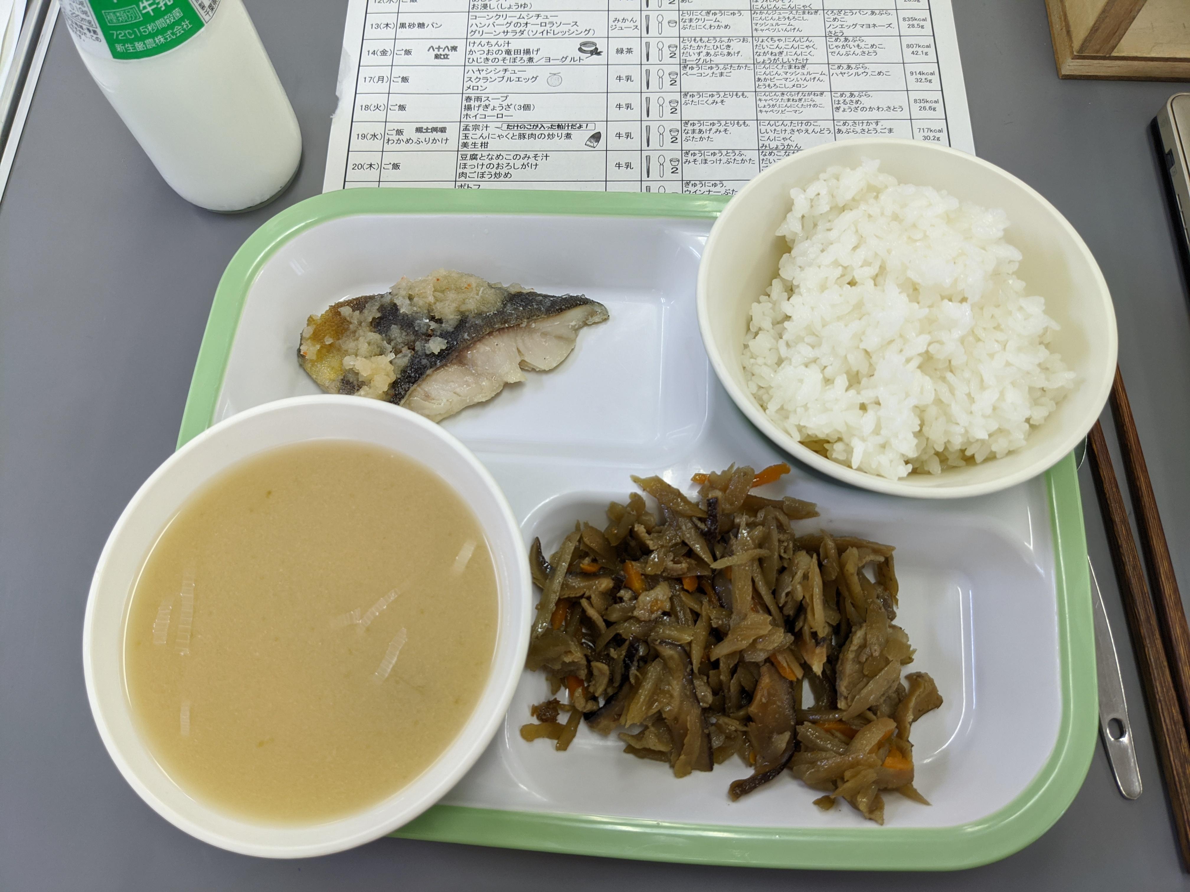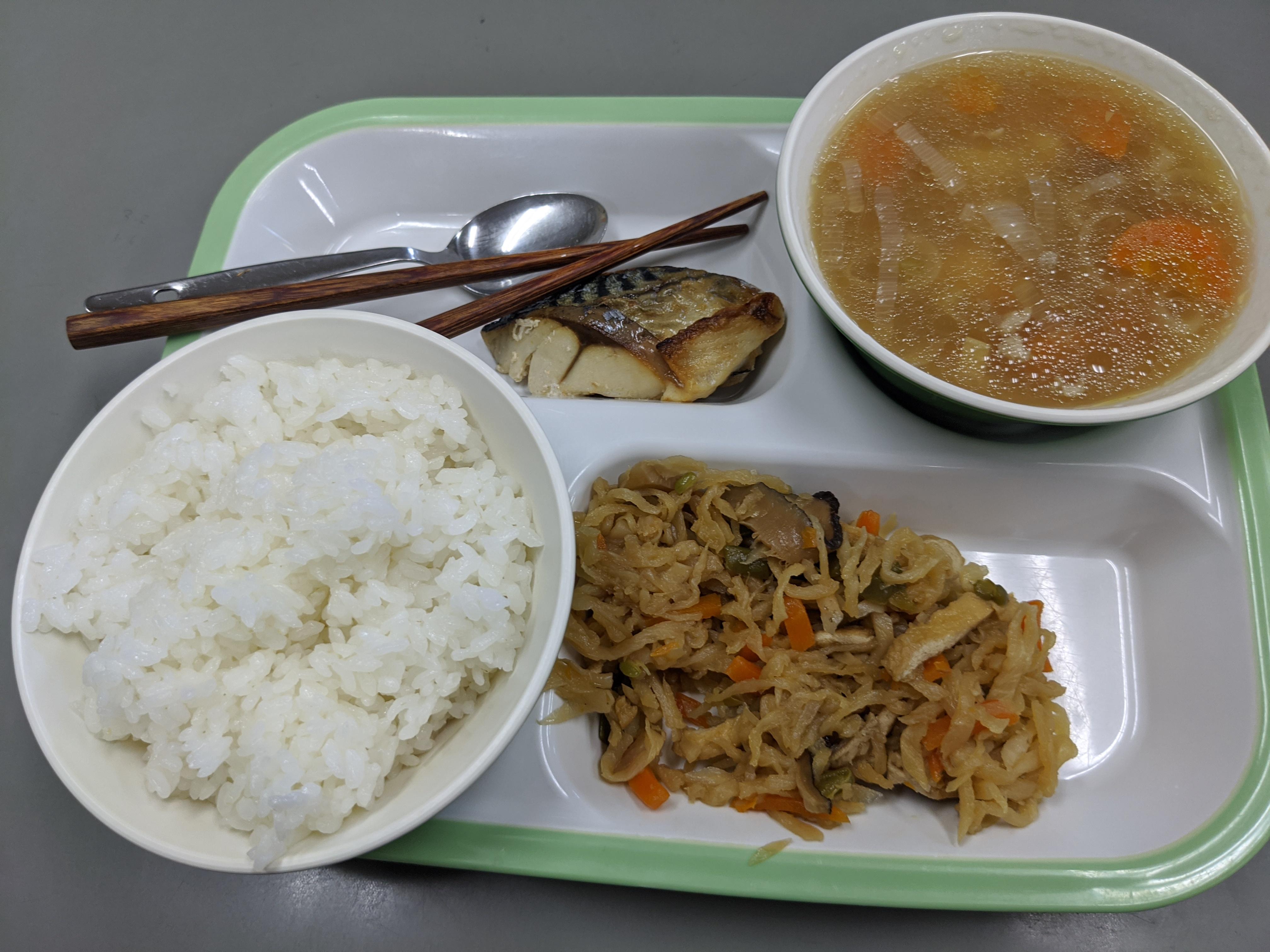 本日のメニューはほとんど味がしなくてあっさりとしたサワラ、白米