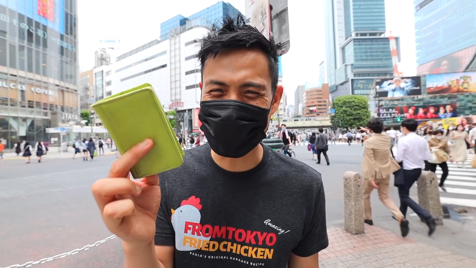 実験1:人通りの多い渋谷スクランブル交差点で緑の財布を落とす