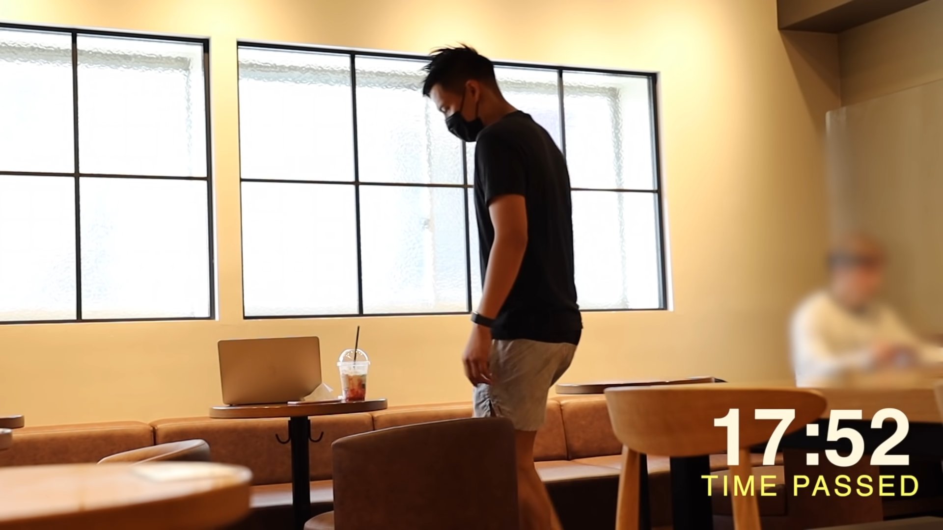 PCを開いて更に見えやすくして長時間席から離れる⇒18分弱経っても貴重品はまだあった