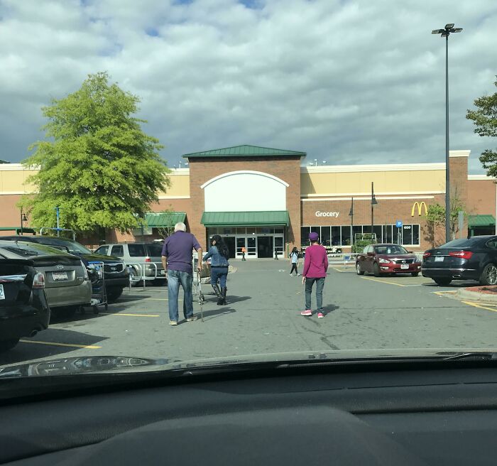 スーパーの店の前の駐車場で入り口に駐車して妻を降ろして