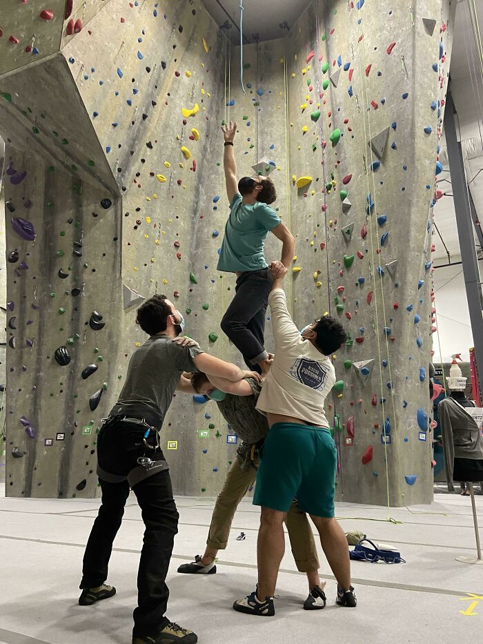 ロープに手を伸ばす友達が偶然にも素晴らしい作品になった