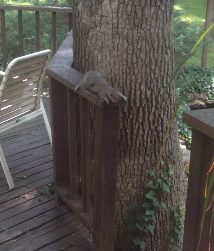 暑すぎるとリスはこうやって休むみたいだ