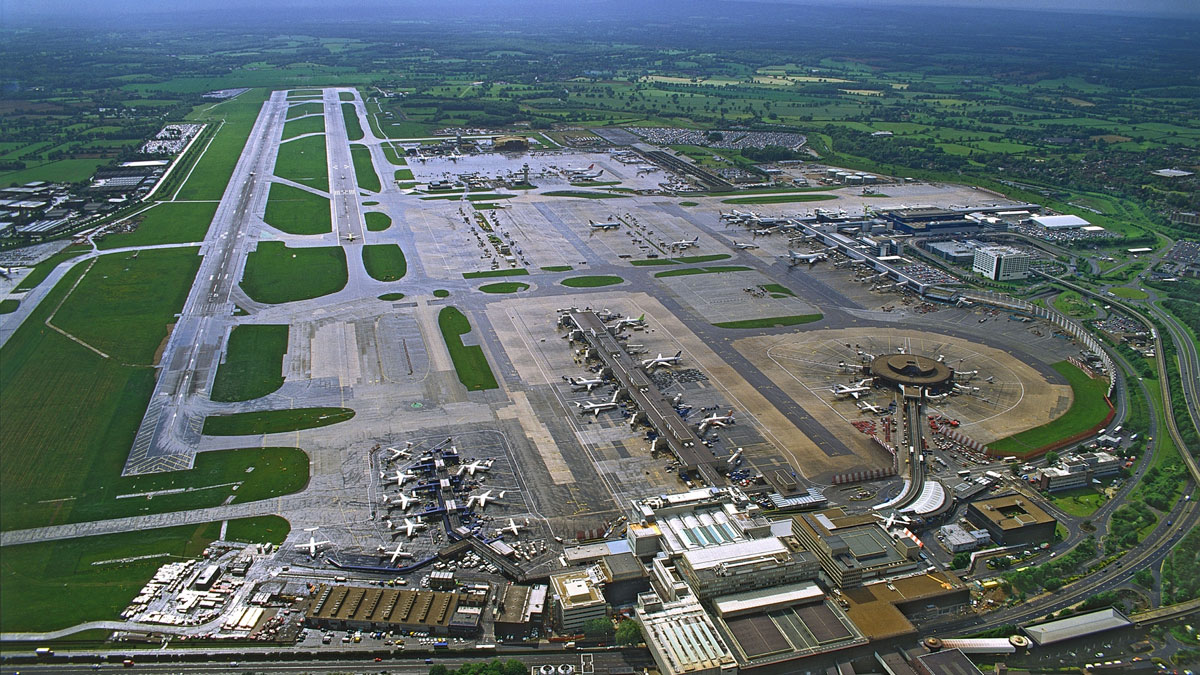 ロンドン・ガトウィック空港 それぞれの滑走路が近すぎて同時に使用できないので右側のほうが予備になってる