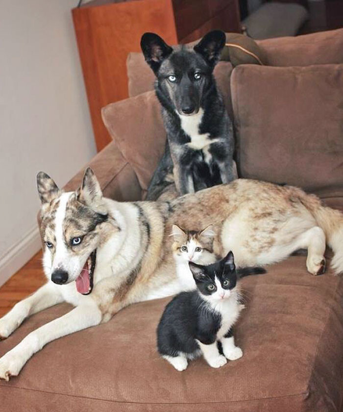友達のハスキーの雑種2匹&色が同じ2匹の猫ちゃん