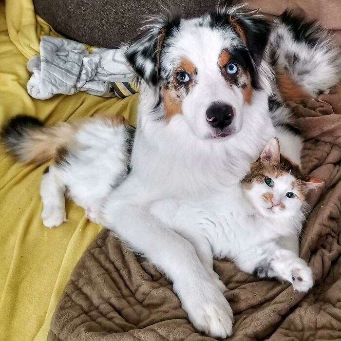 万国アノニマスさん 猫が犬の毛に溶け込んでる(笑)