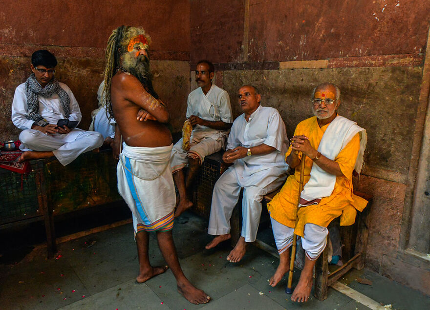 ヒンドゥー教ヴィシュヌ派の司祭と地元民