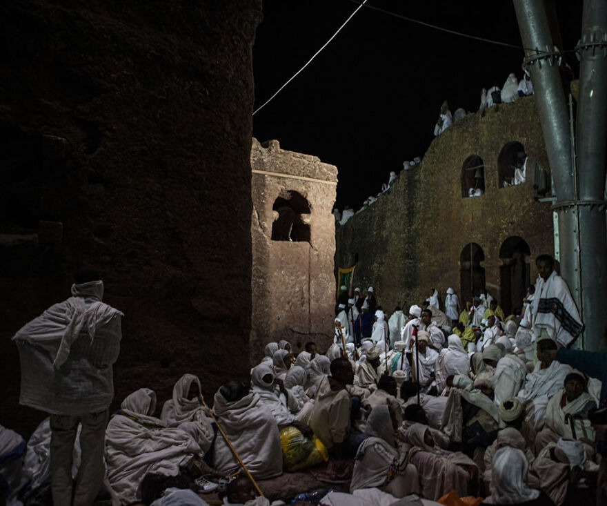 聖地でクリスマスのミサを待つ巡礼者達(エチオピア)