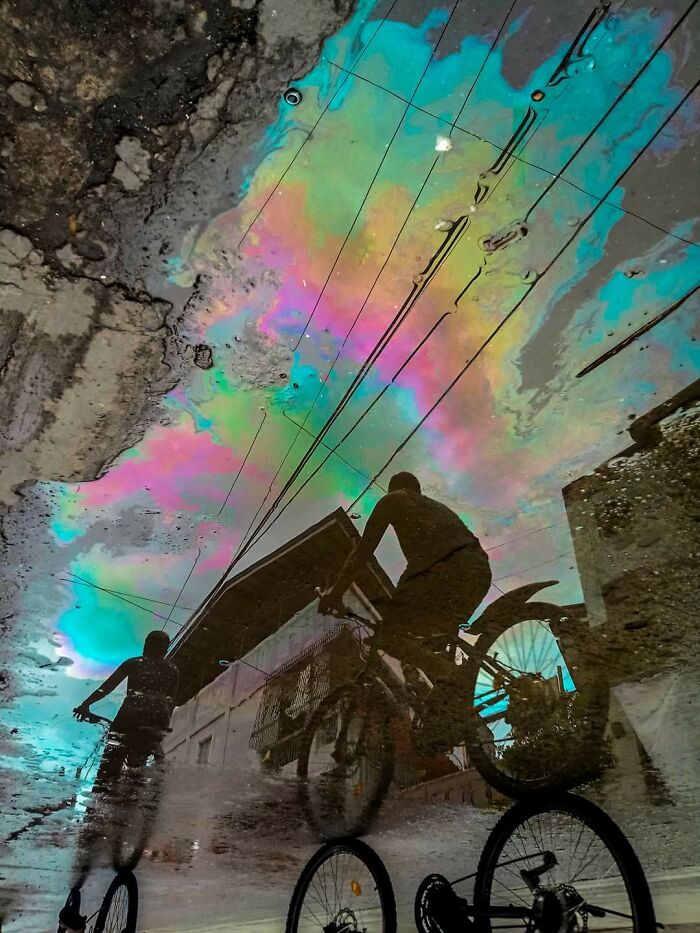 油の浮いた水たまり