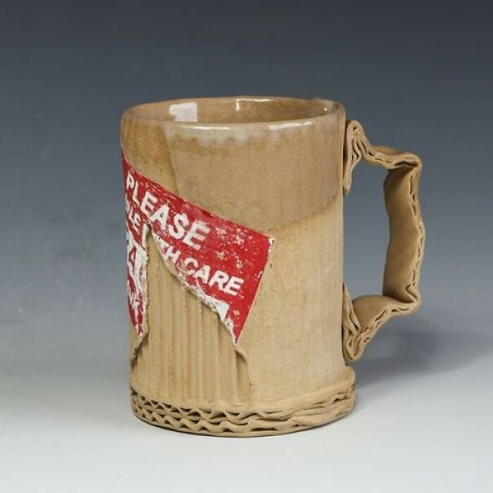 ダンボールで出来てるように見える陶器のマグカップ
