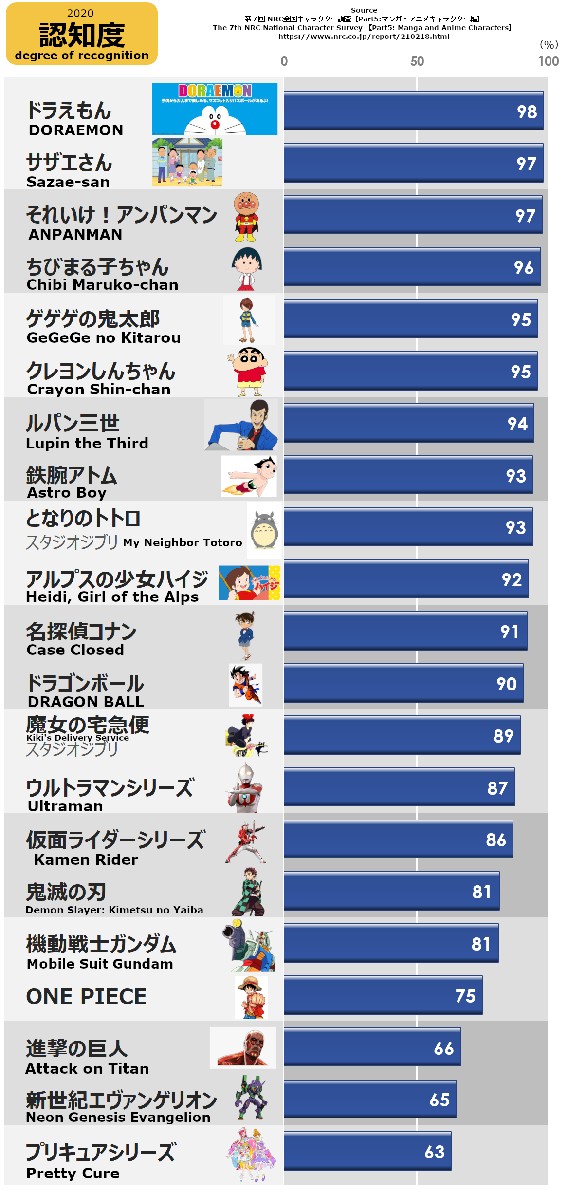 日本の漫画・アニメキャラクターの認知度ランキング2020