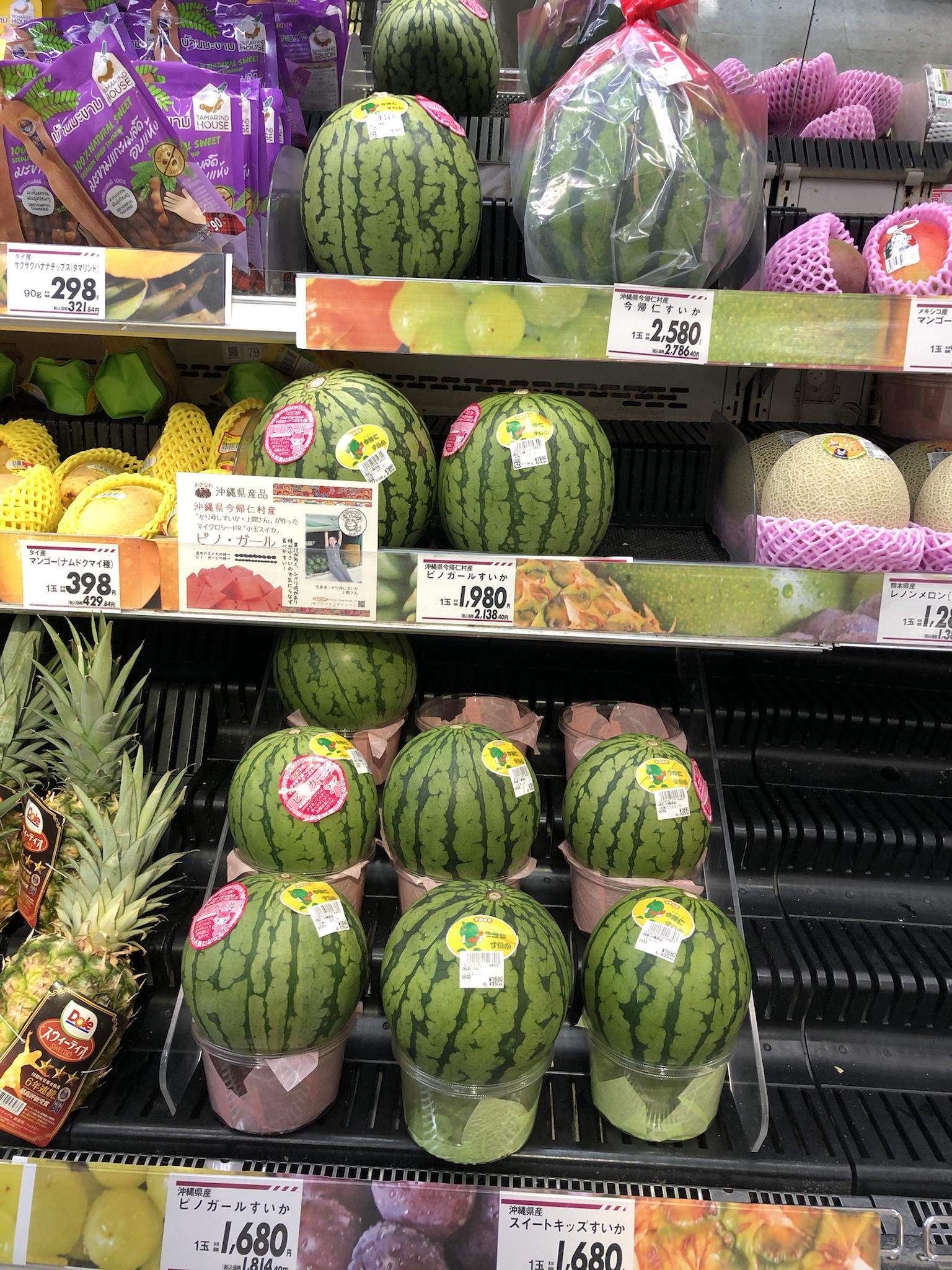 つまりこれは沖縄のスーパーですね。スイカの品種もあまり聞いたことないのが売られてる。