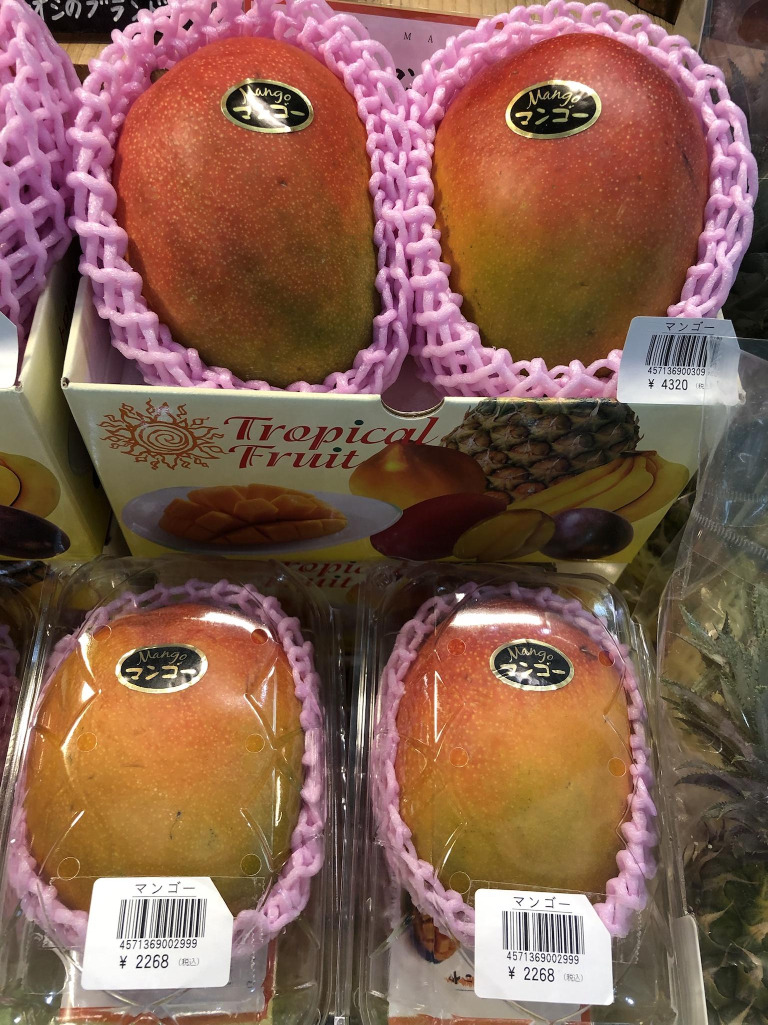 箱に入ったマンゴーは生まれて初めてだ、2個で約38ドルもした