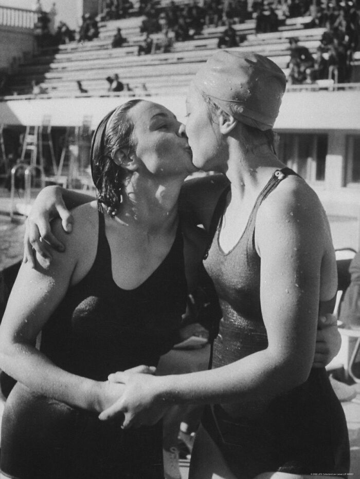 自分を破ったライバルを称えるソ連の水泳選手