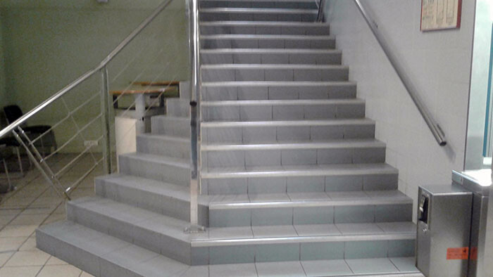 多分、昔はエスカレーターで経費節減により階段にしたようなので、手すりは流用したのさ。