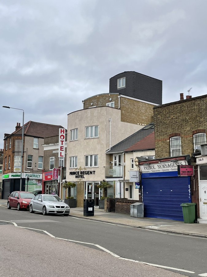 ホテルの増築よりも路側帯の白線がジグザグなのに目が行った