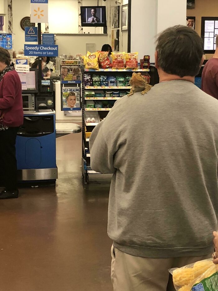 買い物にペットの鳥を連れてくる人達