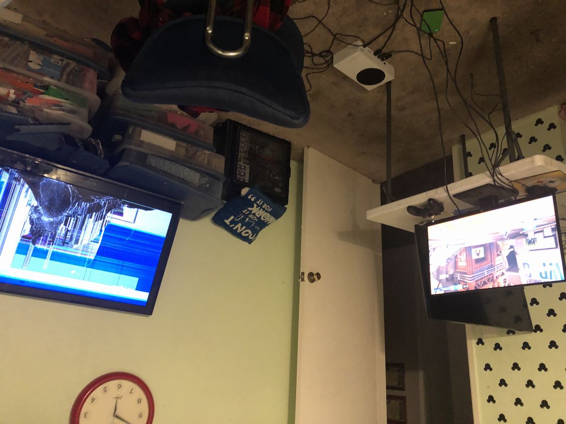右側にはブラウン管やレトロゲーム機がいくつかある