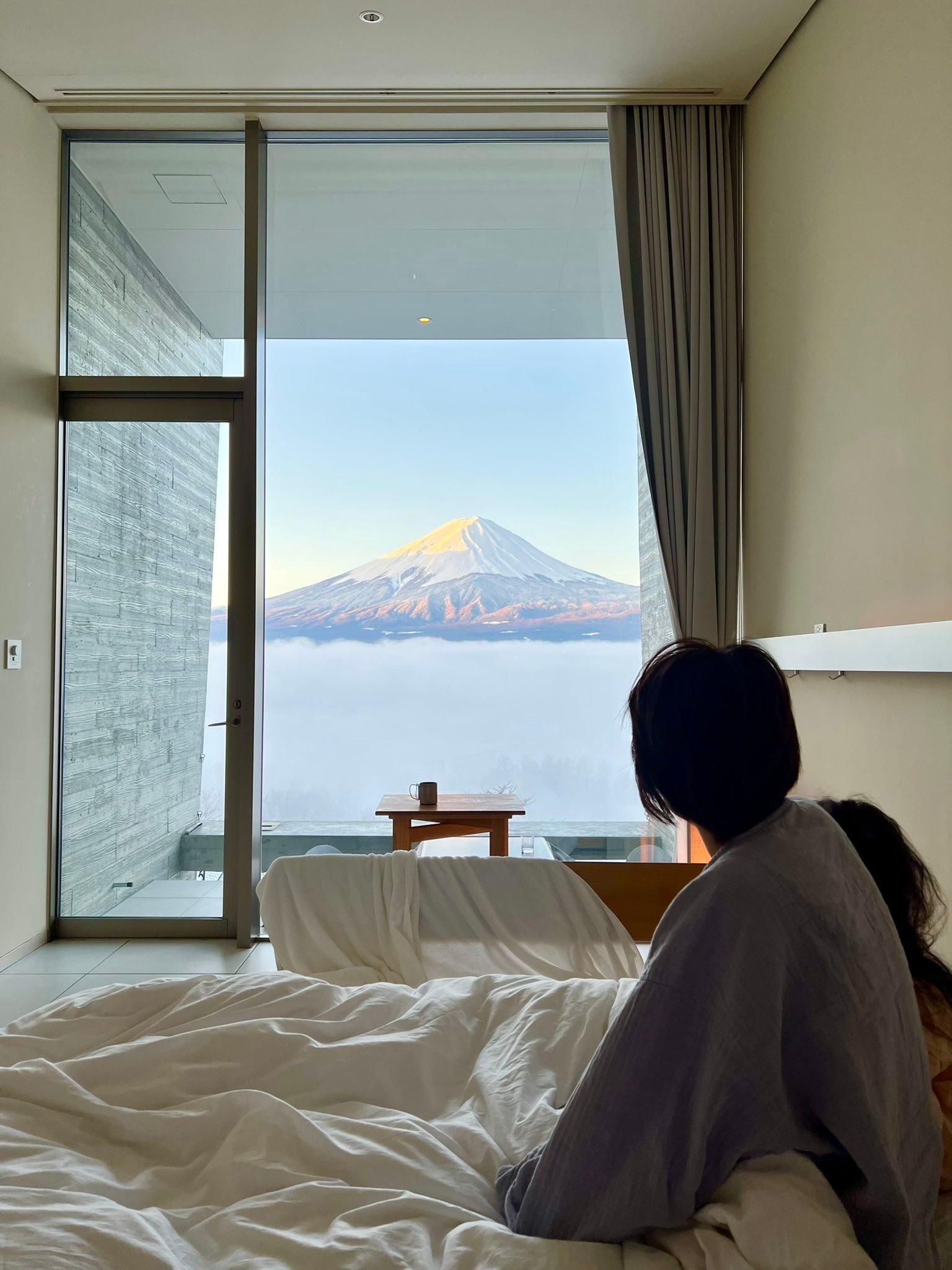 窓からハッキリと富士山が見えたけど凄く美しかった