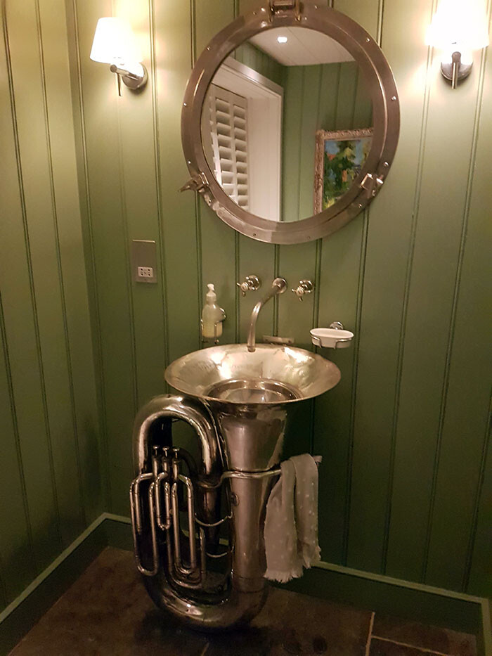 叔父のバスルームにあった金管楽器の洗面台