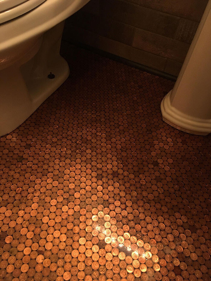 万国アノニマスさん父親がバスルームの床を1セント硬貨で作ってた