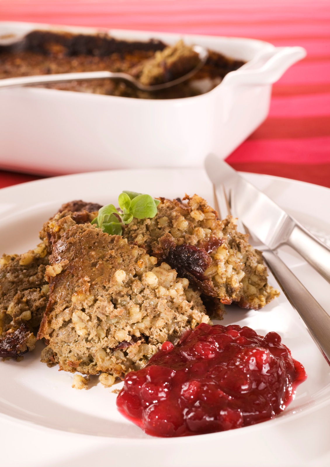 肉とクランベリーとピクルスを添えたマッシュポテト?