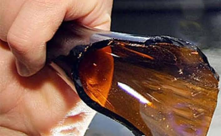 この透明ガラスが黒曜石に見えるの??