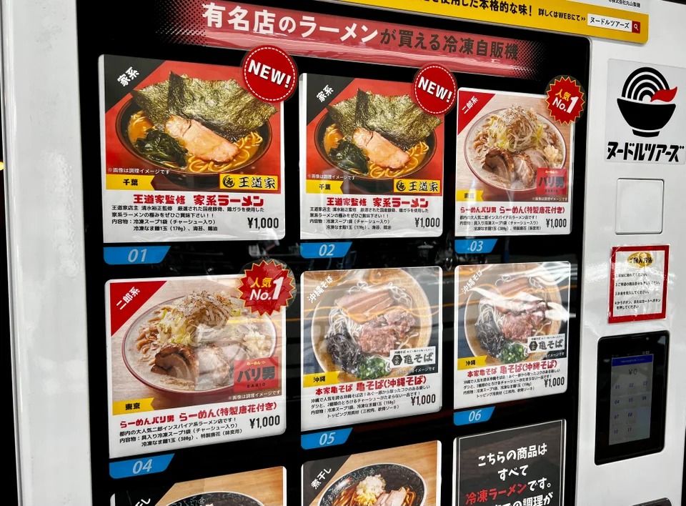 凪、ど・みそのような東京のトップクラスの店の冷凍ラーメンを売ってる自動販売機