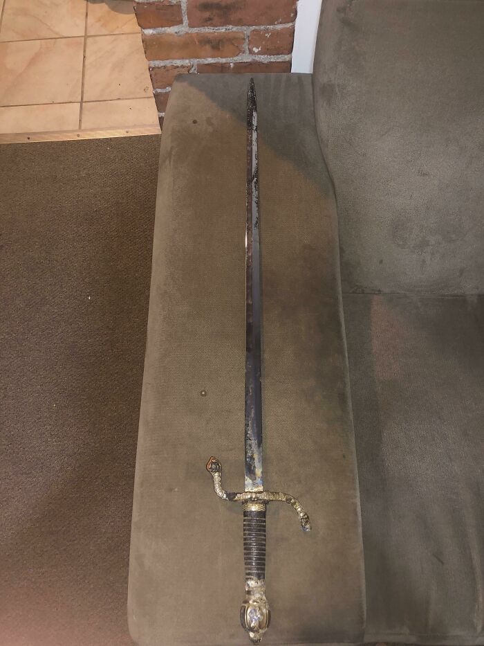 剣は普通、鉄と炭素を素材として作られてるから本物なら錆びてる。