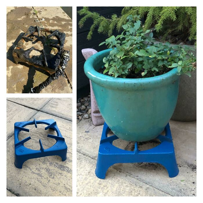 自分が数ヶ月前にマグネットフィッシングで見つけたコンロの金属部分を姉が再利用してた ↑