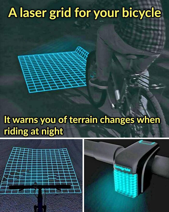 夜間、自転車に乗っている時に地形の変化に注意出来るレーザーライト
