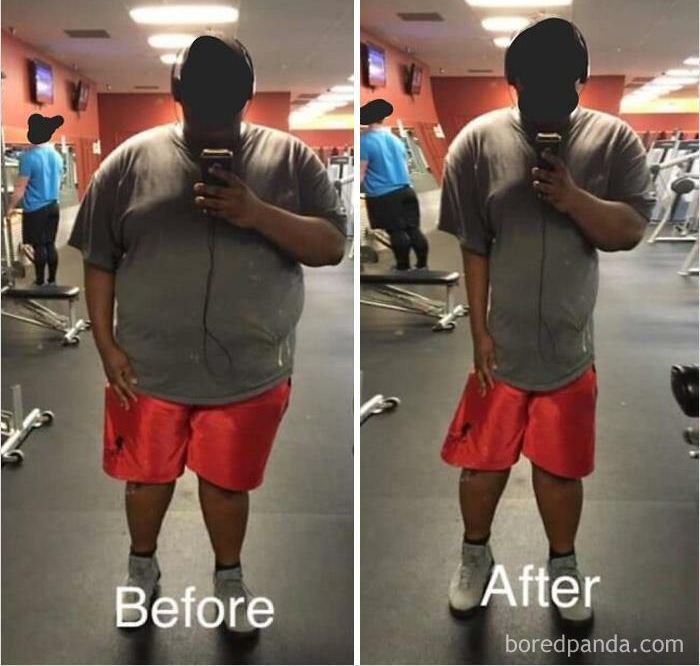 彼は凄く痩せたが後ろにいる人は太ってしまった