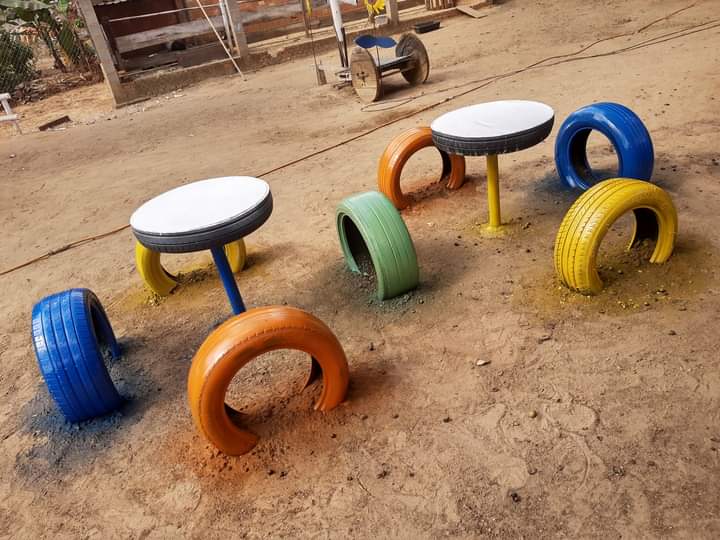 小学校によく半分埋めてあるタイヤがあったけど今はないのかな。