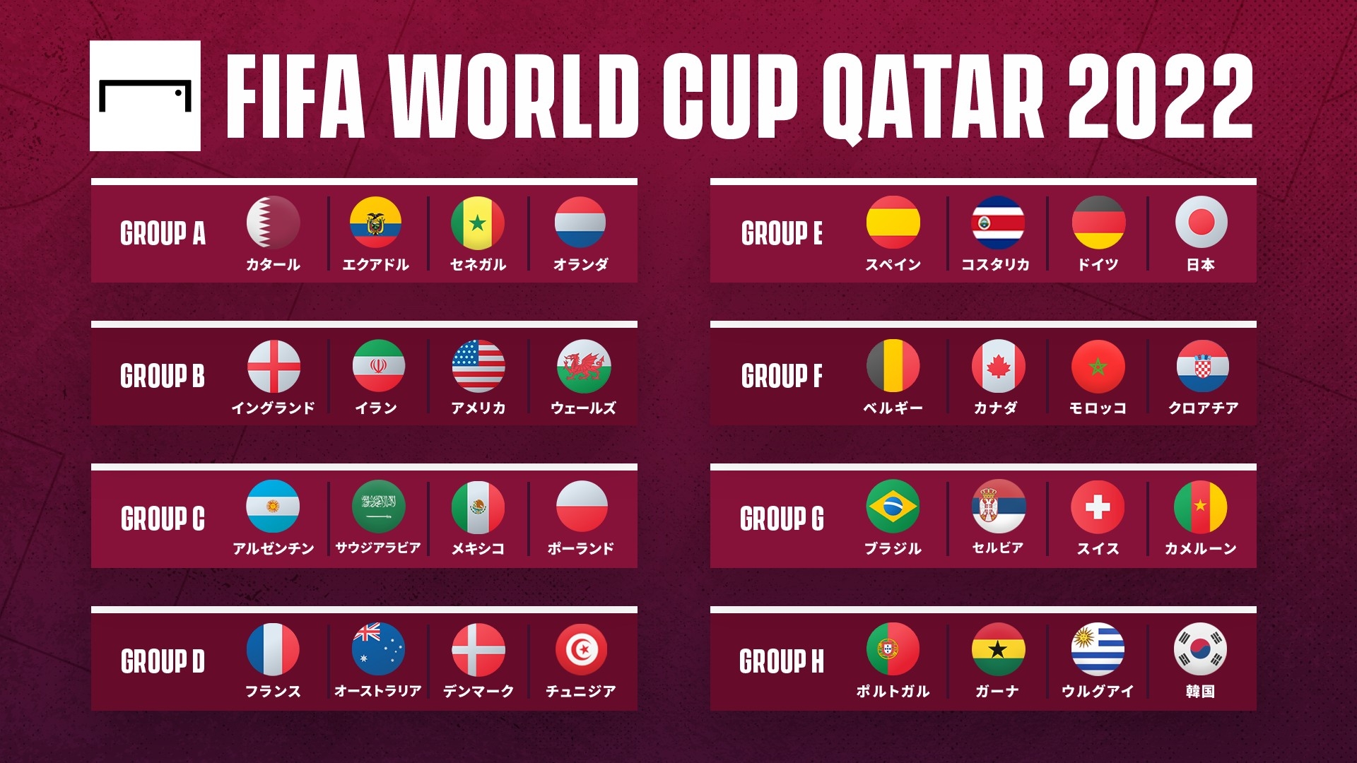 奇跡が必要:ウェールズ、イラン、日本、カナダ、ポーランド、韓国、エクアドル、アメリカ、モロッコ、コスタリカ、メキシコ